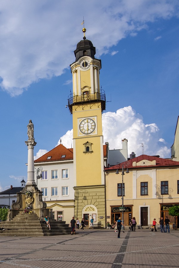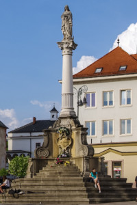 Barokový stĺp z roku 1719 postavený na znak vďaky Panne Márii za záchranu pred morovou epidémiou. Stĺp bol viackrát upravovaný a tiež premiestnený, aby sa v r. 1994 po rekonštrukcii námestia nakoniec vrátil takmer na svoje pôvodné miesto.